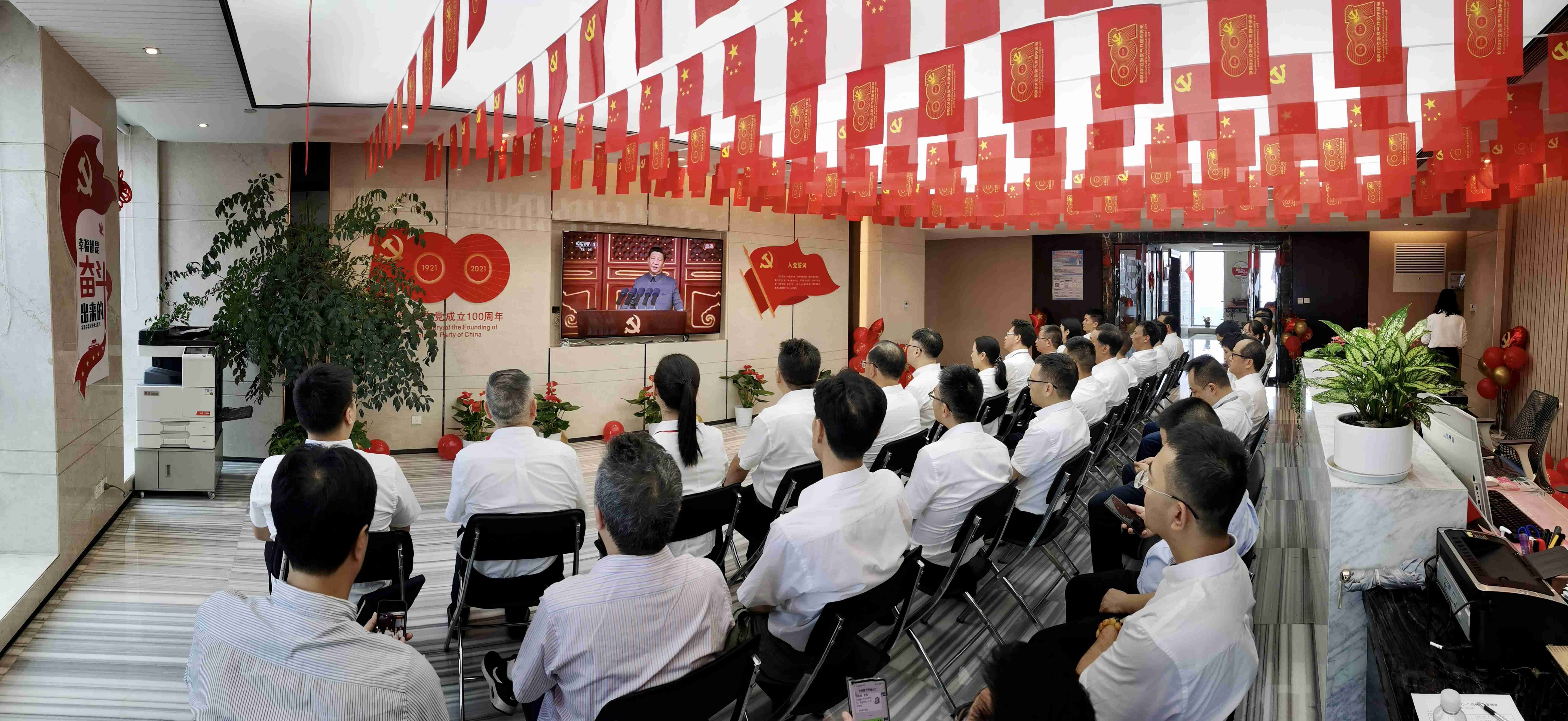 7月1日上午8時,浙江省冶金物資有限公司組織干部職工通過視頻直播形式,共同收聽收看“慶祝中國共產黨成立100周年大會”慶典盛況,學習習近平總書記發表的重要講話,共慶黨的百年華誕!