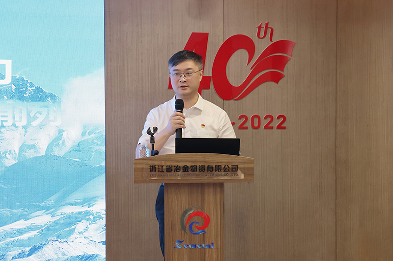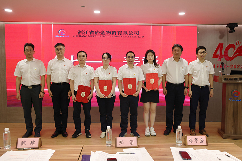 公司黨委副書記、紀委書記陳建宣讀“七一”表彰文件。陳建表示,公司各級黨組織和廣大黨員干部要以先進為榜樣,在遵循戰略指引中搶抓機遇,在把握發展大局中乘勢而上,以飽滿的政治熱情和求真務實的工作態度,奮力完成全年目標任務,為開創冶金物資轉型升級高質量發展新局面做出積極貢獻。